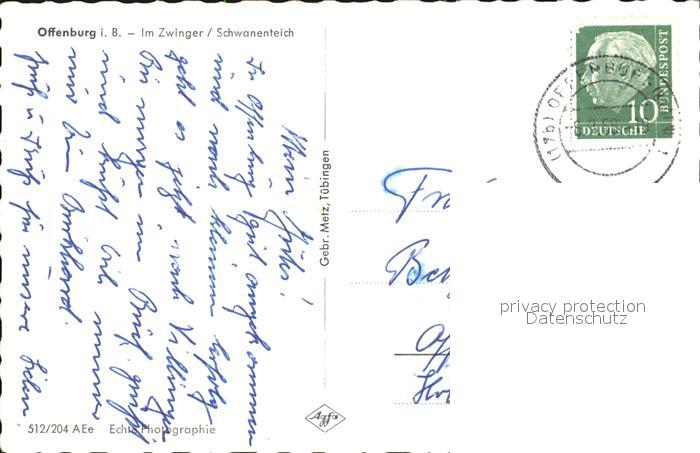 72430775 alte Postkarte Offenburg Im Zwinger Schwanenteich Fontaene postalisch gelaufen Erhaltung siehe scans KatCode: 11110008317096