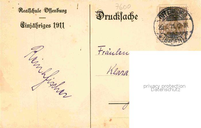 Offenburg Kuenstlerkarte R. F. Realschule Einjaehriges