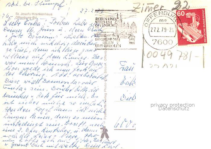 72639579 alte Postkarte Offenburg St Josefs Krankenhaus postalisch gelaufen Erhaltung siehe scans [FriedD77] KatCode: 11110008317096