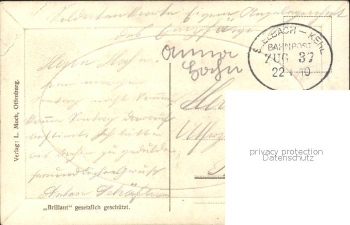 31728427 alte Postkarte Offenburg Volksgarten Bahnpost postalisch gelaufen Erhaltung siehe scans KatCode: 11110008317096
