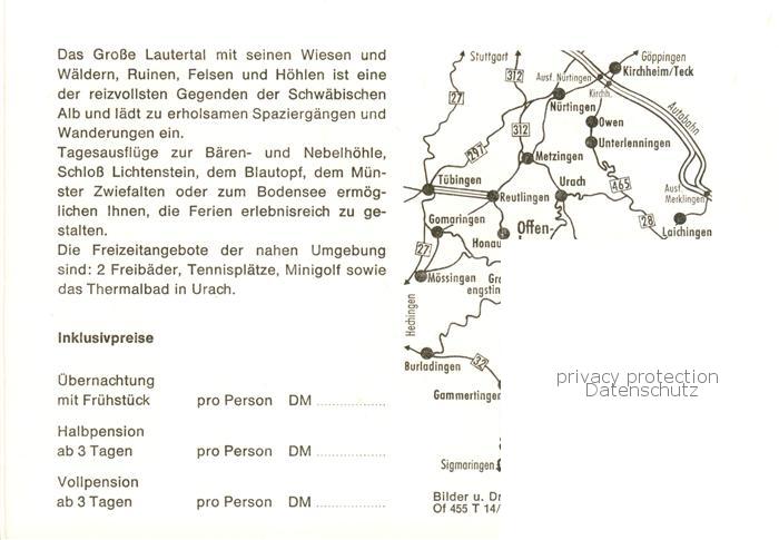 73836512 Offenhausen Gomadingen Gaestehaus Gestuetsgasthof Gastraum Zimmer postalisch nicht gelaufen Werbekarte (keine Postkarte) Erhaltung siehe scans [WerneD78] KatCode: 11110008415027