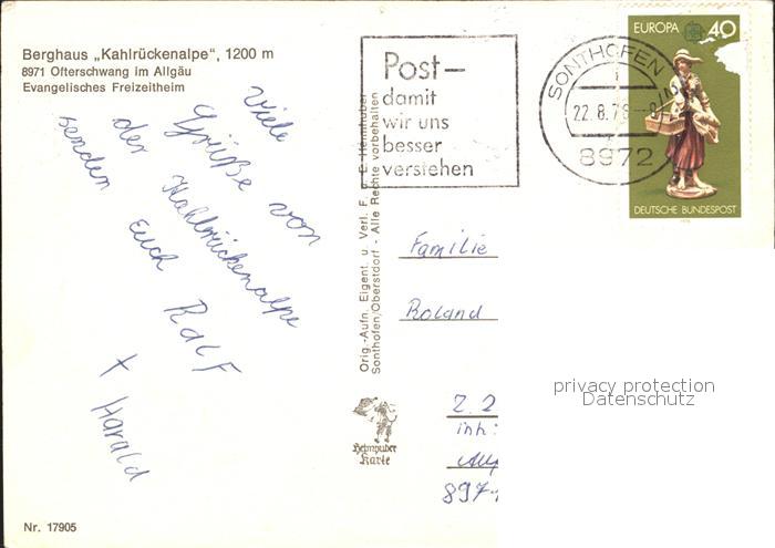 72146212 alte Postkarte Ofterschwang Berghaus Kahlrueckenalpe postalisch gelaufen Erhaltung siehe scans KatCode: 11110009780134