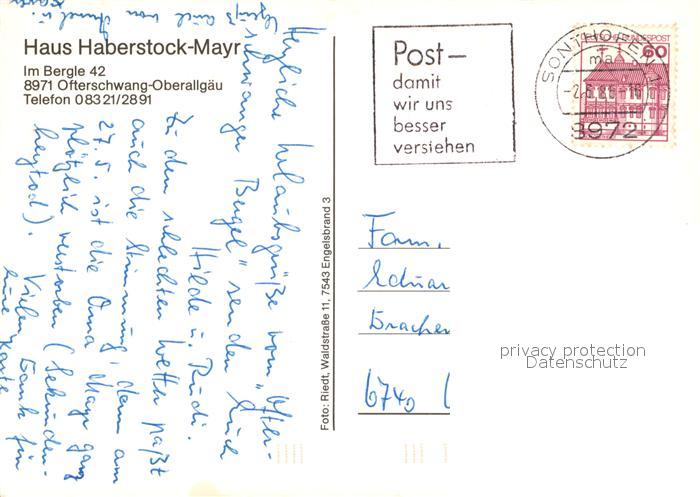 73157961 alte Postkarte Ofterschwang Haus Haberstock Mayr Gaestehaus Pension Alpenblick postalisch gelaufen Erhaltung siehe scans [FriedD77] KatCode: 11110009780134
