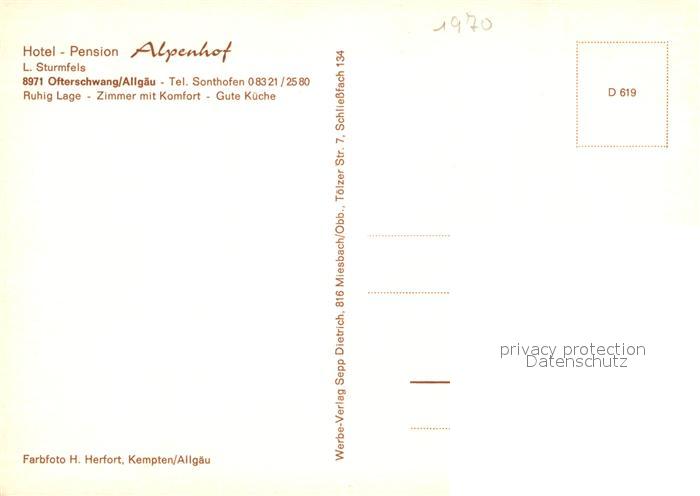 72932145 Ofterschwang Hotel Pension Alpenhof postalisch nicht gelaufen Erhaltung siehe scans [LiesaD40] KatCode: 11110009780134
