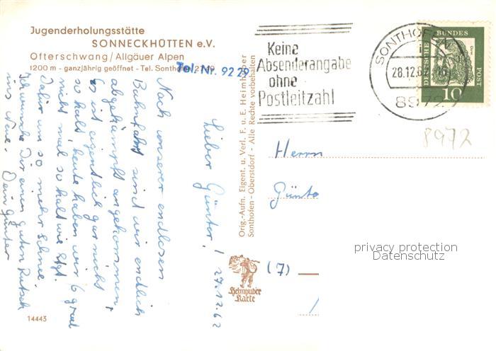 73783895 alte Postkarte Ofterschwang Jugenderholungsstaette Sonneckhuetten postalisch gelaufen Erhaltung siehe scans [WerneD78] KatCode: 11110009780134