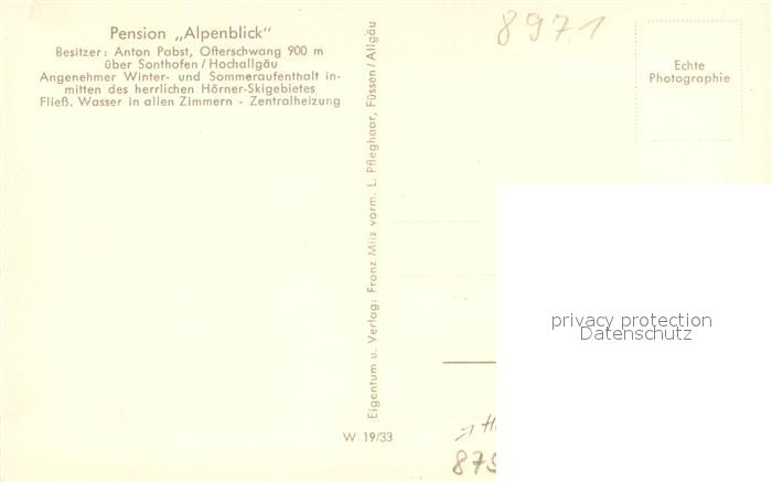 73710439 Ofterschwang Pension Alpenblick im Schnee postalisch nicht gelaufen Erhaltung siehe scans [LiesaD40] KatCode: 11110009780134