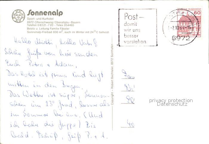 72369591 alte Postkarte Ofterschwang Sport- und Kurhotel Sonnenalp postalisch gelaufen Erhaltung siehe scans KatCode: 11110009780134