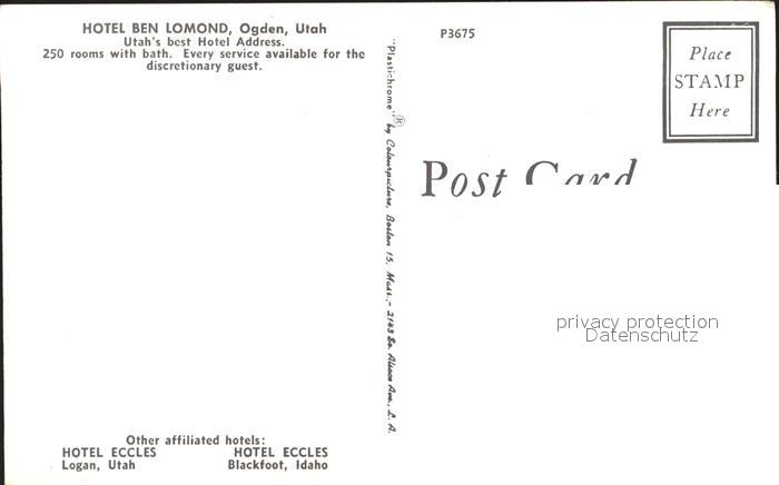 11688568 Ogden Utah Hotel Ben Lomond postalisch nicht gelaufen Erhaltung siehe scans KatCode: 14140470000000