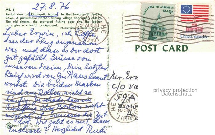 74141673 old postcard Ogunquit Maine USA Fliegeraufnahme postalisch gelaufen Erhaltung siehe scans [WerneD78] KatCode: 14140210000000
