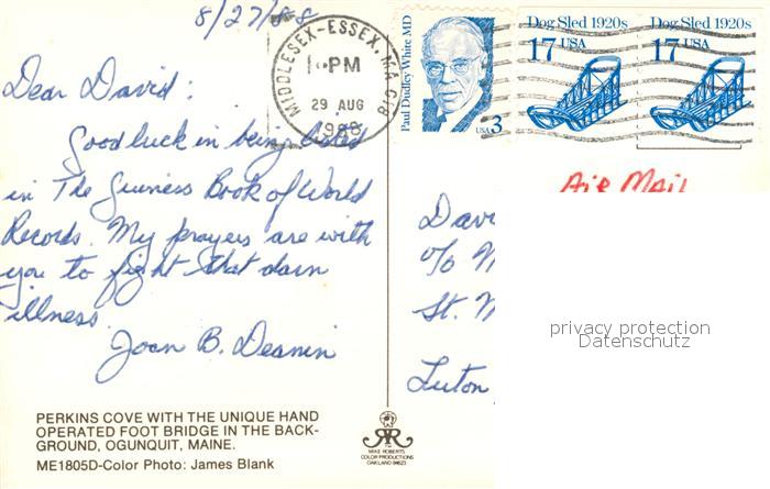 73132121 old postcard Ogunquit Perkins Cove Unique Hand Operated Foot Bridge postalisch gelaufen Erhaltung siehe scans [KathaD81] KatCode: 14140210000000