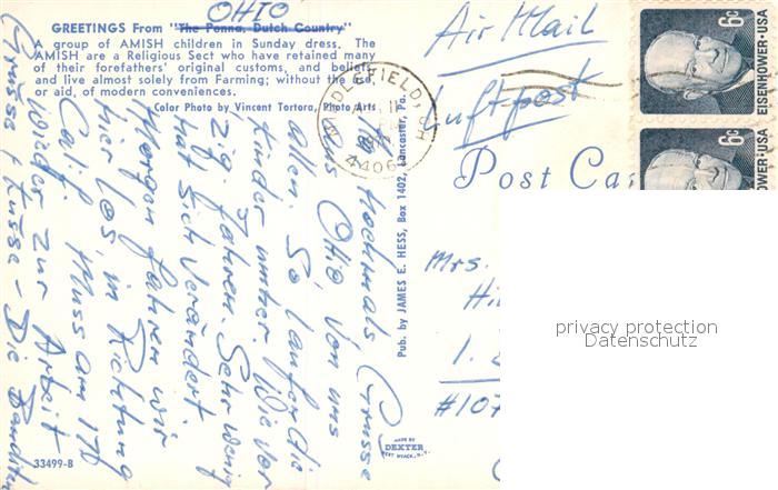 73047656 old postcard Ohio US-State A group of AMISH children in Sunday dress postalisch gelaufen Erhaltung siehe scans [WerneD78] KatCode: 14140150000000