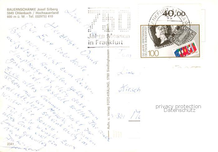 73862341 alte Postkarte Ohlenbach Schmallenberg Bauernschaenke Silberg postalisch gelaufen Erhaltung siehe scans [FriedD77] KatCode: 11110005958040