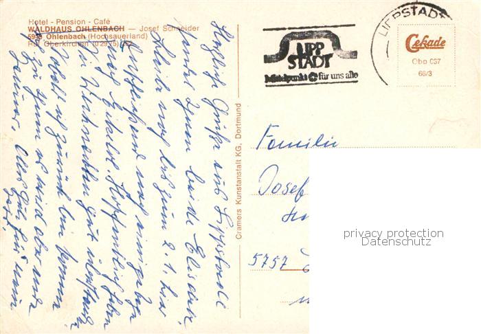 73835583 alte Postkarte Ohlenbach Schmallenberg Hotel Pension Cafe Waldhaus Ohlenbach Gastraeume postalisch gelaufen Erhaltung siehe scans [WerneD78] KatCode: 11110005958040