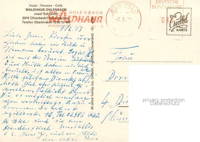 73829947 alte Postkarte Ohlenbach Schmallenberg Hotel Pension Waldhaus Ohlenbach Terrasse postalisch gelaufen Erhaltung siehe scans [WerneD78] KatCode: 11110005958040