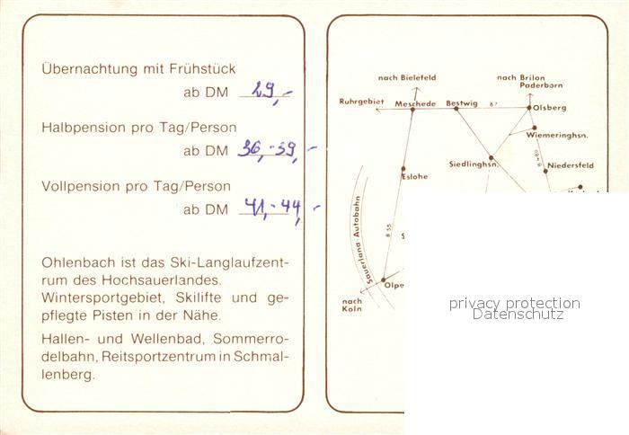73109206 Ohlenbach Schmallenberg Hotel Pension postalisch nicht gelaufen Werbekarte (keine Postkarte) Erhaltung siehe scans [KathaD81] KatCode: 11110005958040