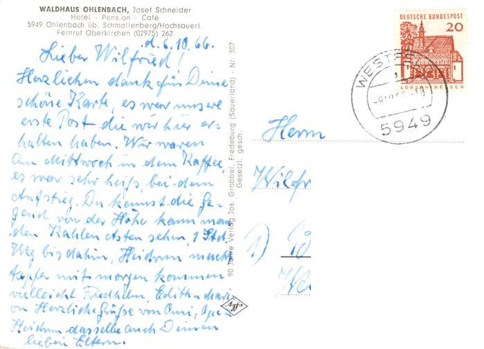 73902881 alte Postkarte Ohlenbach Schmallenberg Waldhaus Ohlenbach Hotel Pension Cafe postalisch gelaufen Erhaltung siehe scans [WerneD78] KatCode: 11110005958040