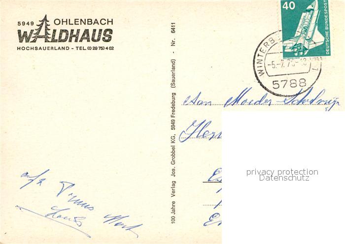 72936553 alte Postkarte Ohlenbach Waldhaus Berggaststaette Restaurant postalisch gelaufen Erhaltung siehe scans [FriedD77] KatCode: 11110005958040