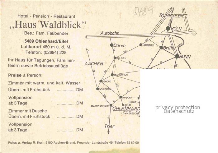 Ohlenhard Ahrweiler Rheinland-Pfalz Hotel Pension Haus Waldblick postalisch nicht gelaufen Keine Postkarte (siehe scan) Erhaltung siehe scans [IrynaD87] Keine Postkarte (siehe scan) Iryn Katcode 11110007131062