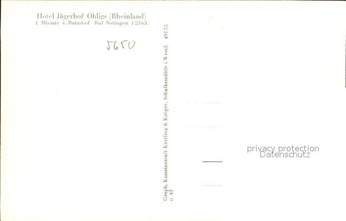 31721542 Ohligs Hotel Jaegerhof postalisch nicht gelaufen Erhaltung siehe scans KatCode: 11110005122000