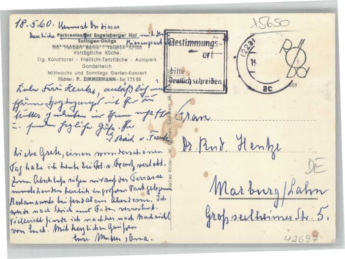 40680564 Ohligs Restaurant Engelsberger Hof postalisch gelaufen Alte Ansichtskarte Postkarte alte Postkarte Katcode 11110005122000