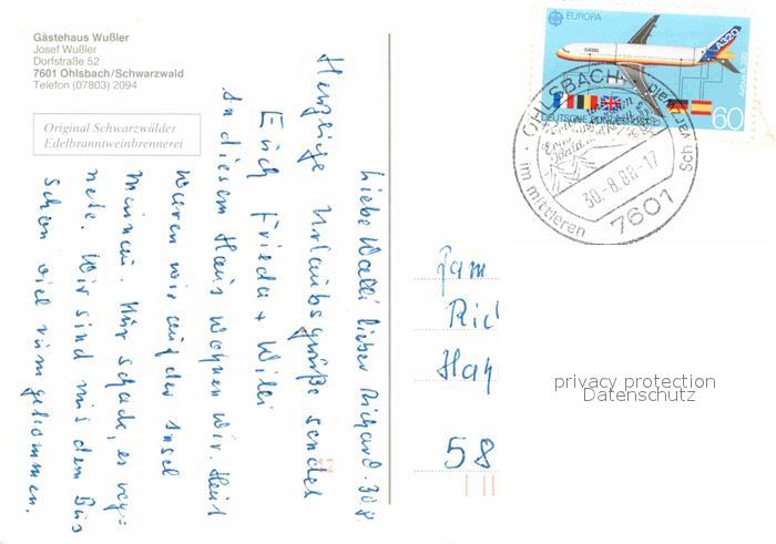 72916624 alte Postkarte Ohlsbach Gaestehaus Wussler postalisch gelaufen Erhaltung siehe scans [KathaD81] KatCode: 11110008317097