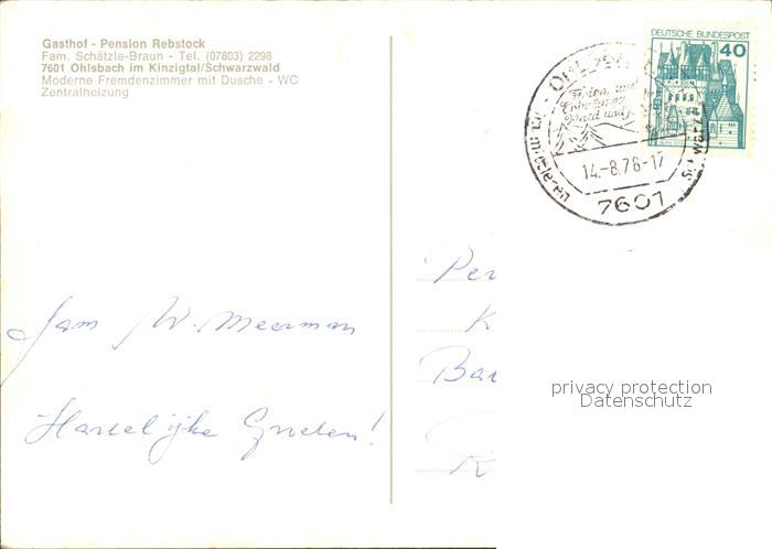 72597427 alte Postkarte Ohlsbach Gasthaus Pension Rebstock postalisch gelaufen Erhaltung siehe scans [LiesaD40] KatCode: 11110008317097