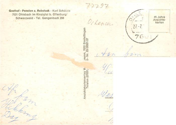 73894826 alte Postkarte Ohlsbach Hohes Horn Panorama Brandeckform Gasthof zum Rebstock Pavillon Muehle postalisch gelaufen Erhaltung siehe scans [FriedD77] KatCode: 11110008317097