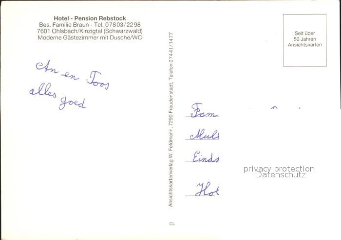 72921408 Ohlsbach Hotel Pension Rebstock postalisch nicht gelaufen Erhaltung siehe scans [LiesaD40] KatCode: 11110008317097