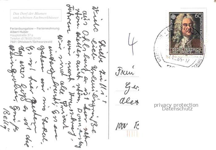 Ohlsbach Kinzigtal BW Ferienbungalow Albert Huber postalisch gelaufen Erhaltung siehe scans [IrynaD87] alte Postkarte Iryn Katcode 11110008317097
