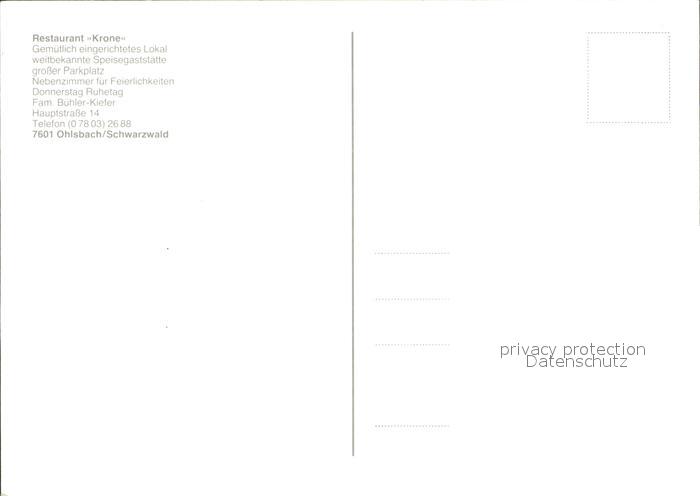 71830746 Ohlsbach Restaurant Krone postalisch nicht gelaufen Erhaltung siehe scans KatCode: 11110008317097