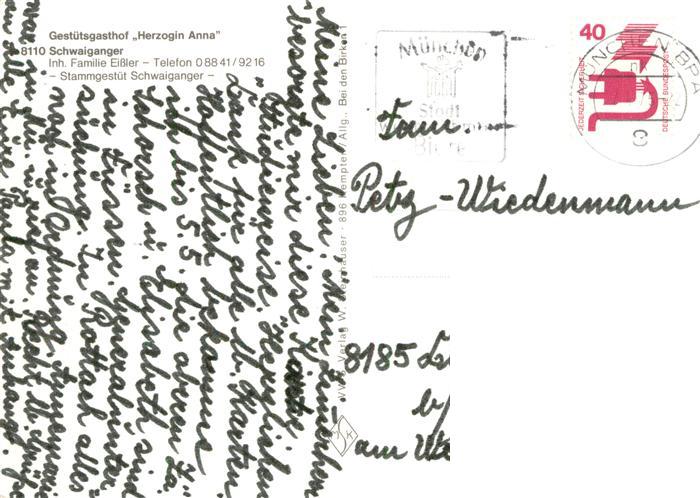 73896258 alte Postkarte Ohlstadt Gestuetsgasthof Herzogin Anna Stammgestuet Schwaiganger postalisch gelaufen Erhaltung siehe scans [WerneD78] KatCode: 11110009180127