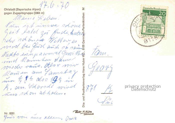 74026253 alte Postkarte Ohlstadt Panorama Blick gegen Zugspitzgruppe Wettersteingebirge postalisch gelaufen Erhaltung siehe scans [FriedD77] KatCode: 11110009180127