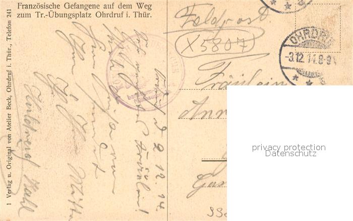 33558926 alte Postkarte Ohrdruf Franz Gefangene auf dem Weg zum Truppenuebungsplatz Ohrdruf postalisch gelaufen Erhaltung siehe scans [WerneD78] KatCode: 11110016067053