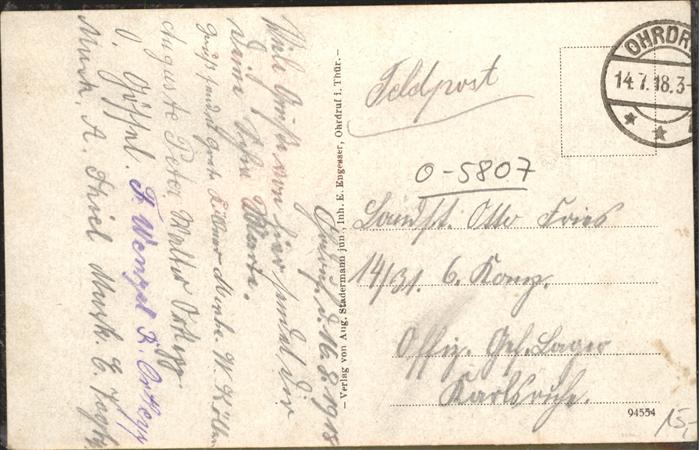 41428826 alte Postkarte Ohrdruf Truppenlager postalisch gelaufen Erhaltung siehe scans KatCode: 11110016067053