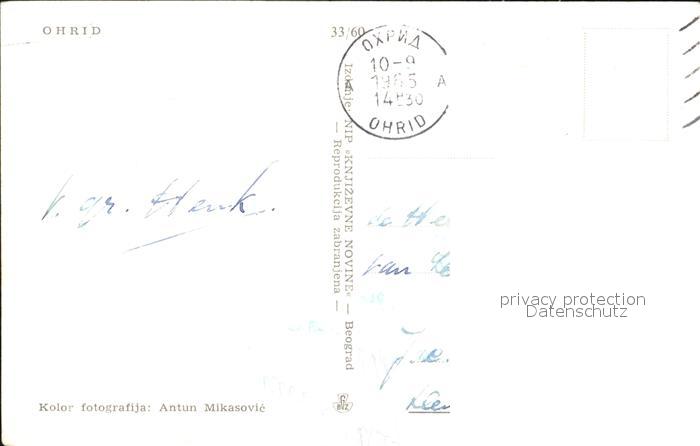 old postcard Ohrid Strand Boote postalisch gelaufen Erhaltung siehe scans