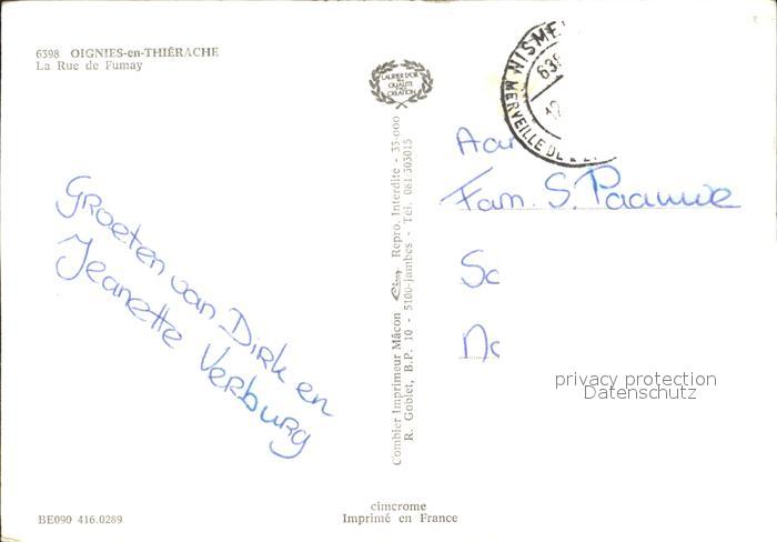 72235830 carte postale Oignies en Thierache La Rue de Fumay postalisch gelaufen Erhaltung siehe scans KatCode: 11070091010137