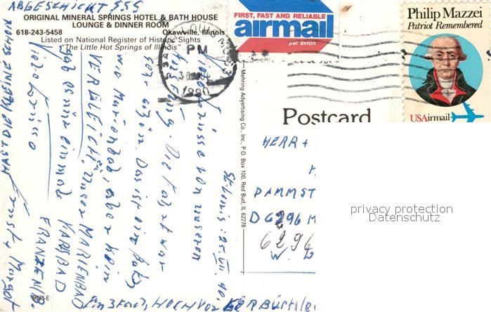 73197691 old postcard Okawville Original mineral springs hotel bath house postalisch gelaufen Erhaltung siehe scans [NatalD47] KatCode: 14140150000000