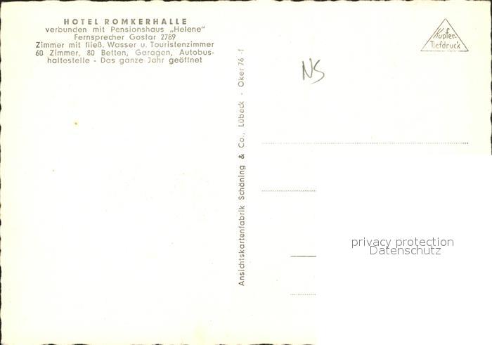72078170 Oker Harz Hotel Romkerhalle postalisch nicht gelaufen Erhaltung siehe scans KatCode: 11110003153005