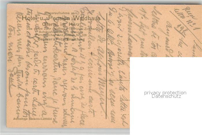 73365093 Okertal Hotel Pension Waldhaus postalisch nicht gelaufen Erhaltung siehe scans [WerneD78] KatCode: 11110003153005