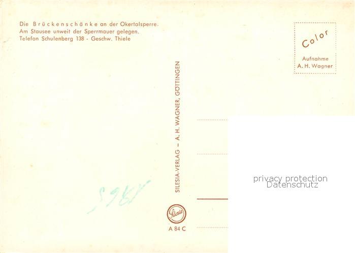 73092804 Okertalsperre Brueckenschaenke postalisch nicht gelaufen Erhaltung siehe scans [PaolaD17] KatCode: 11110003153005