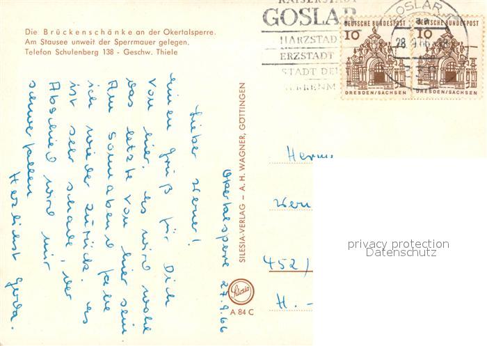 73094673 alte Postkarte Okertalsperre Brueckenschaenke postalisch gelaufen Erhaltung siehe scans [NatalD47] KatCode: 11110003153005
