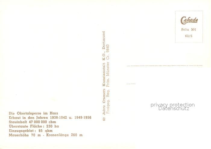 73701185 Okertalsperre Fliegeraufnahme postalisch nicht gelaufen Erhaltung siehe scans [WerneD78] KatCode: 11110003153005