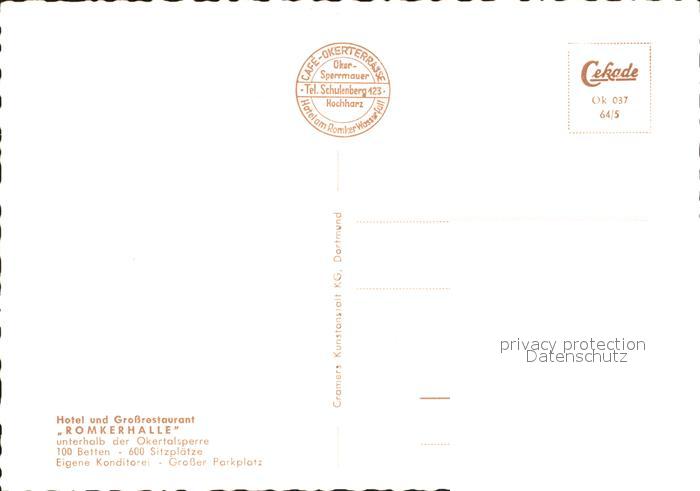 72350135 Okertalsperre Hotel Grossrestaurant Romkerhalle postalisch nicht gelaufen Erhaltung siehe scans KatCode: 11110003153005