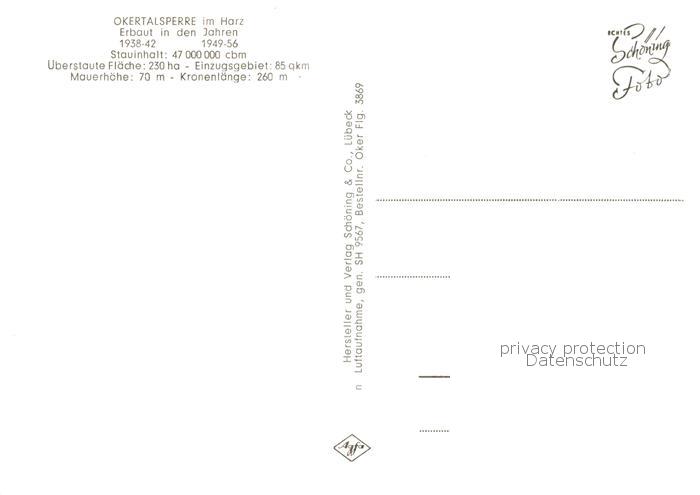 73812920 Okertalsperre Panorama postalisch nicht gelaufen Fliegeraufnahme Erhaltung siehe scans [FriedD77] KatCode: 11110003153005