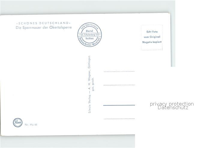 72201073 Okertalsperre Sperrmauer postalisch nicht gelaufen Erhaltung siehe scans KatCode: 11110003153005