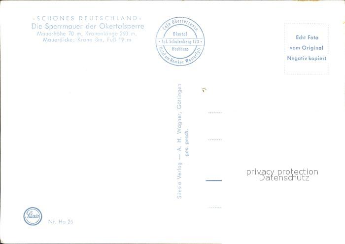 72178848 Okertalsperre Sperrmauer postalisch nicht gelaufen Erhaltung siehe scans KatCode: 11110003153005