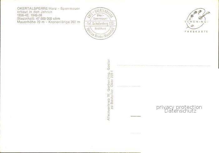 72921187 Okertalsperre Sperrmauer postalisch nicht gelaufen Erhaltung siehe scans [LiesaD40] KatCode: 11110003153005