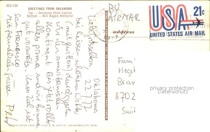 11686275 old postcard Oklahoma City State Capitel Will Rogers Menorial postalisch gelaufen Erhaltung siehe scans KatCode: 14140380000000