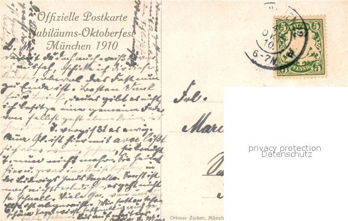 13550243 Oktoberfest M?nchen M. Zeno Diemer postalisch gelaufen Erhaltung siehe scans [PaolaD17] alte Postkarte Paol Katcode 22100000000200