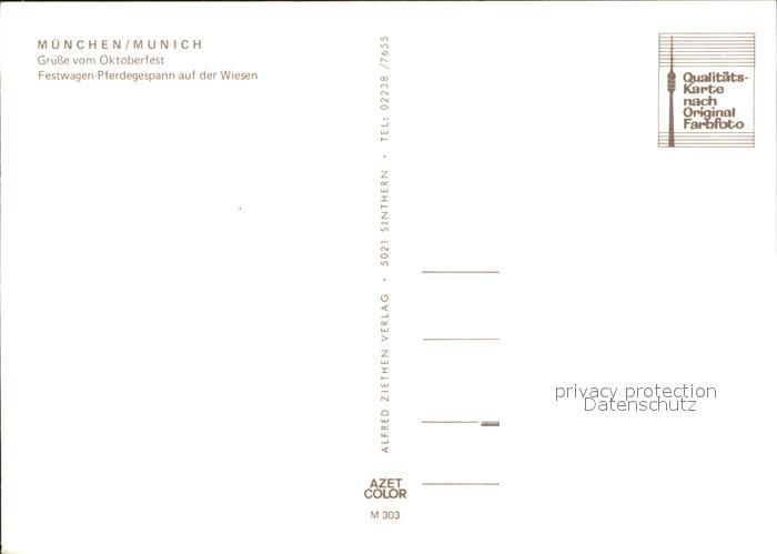 Oktoberfest Muenchen Festwagen-Pferdegespann postalisch nicht gelaufen Erhaltung siehe scans